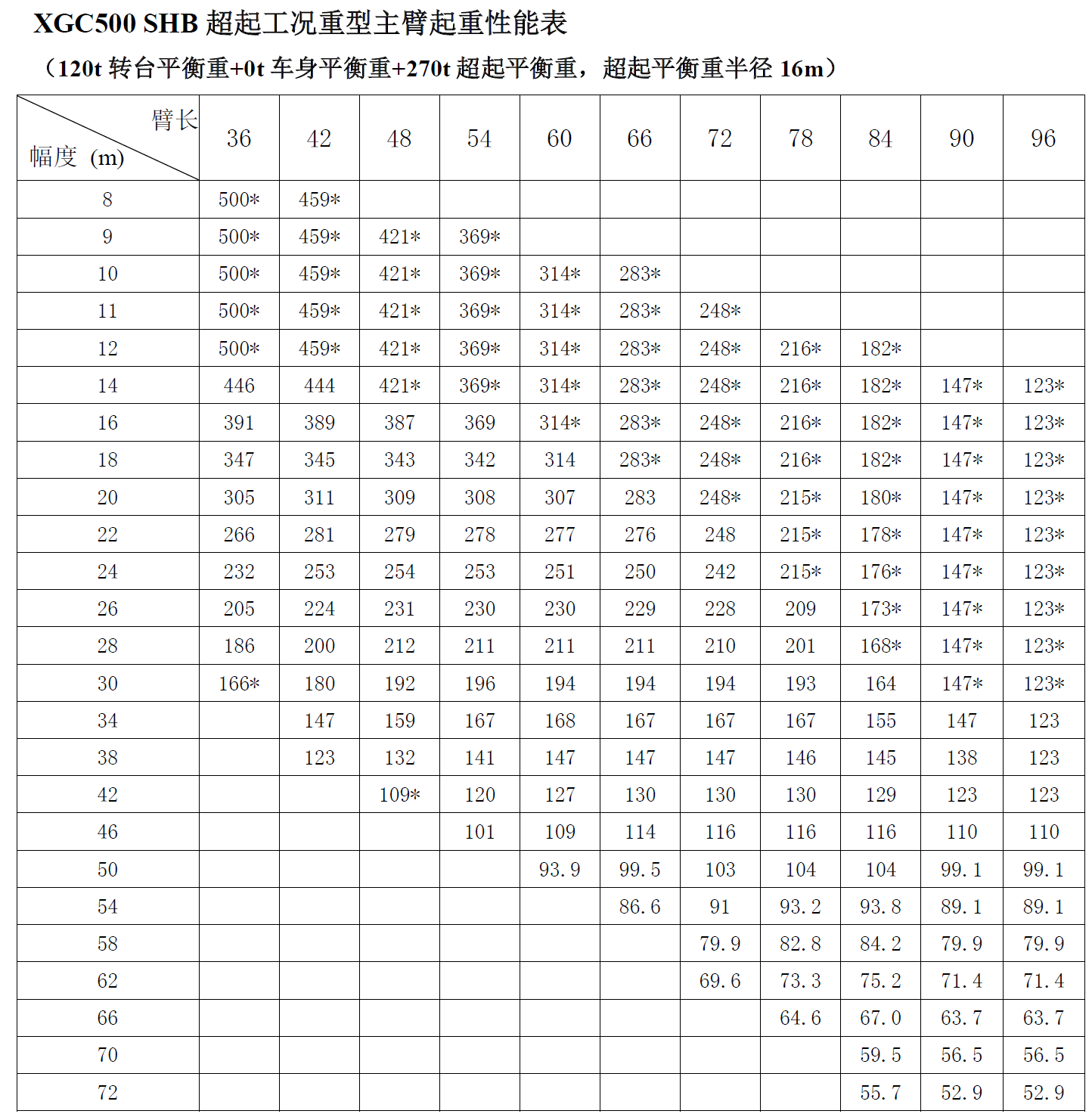 1)SHB:超起重型主臂,36~96 米,1 个10.5 米重型底节,2 个6 米厚主臂中间节,2 个12 米厚壁主臂中间节,3 个12 米薄壁主臂中间节,1 个12 米过渡节, 1 个1.5 米重型主臂臂头。
