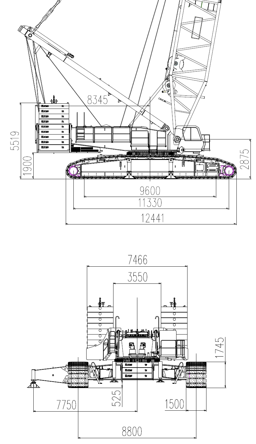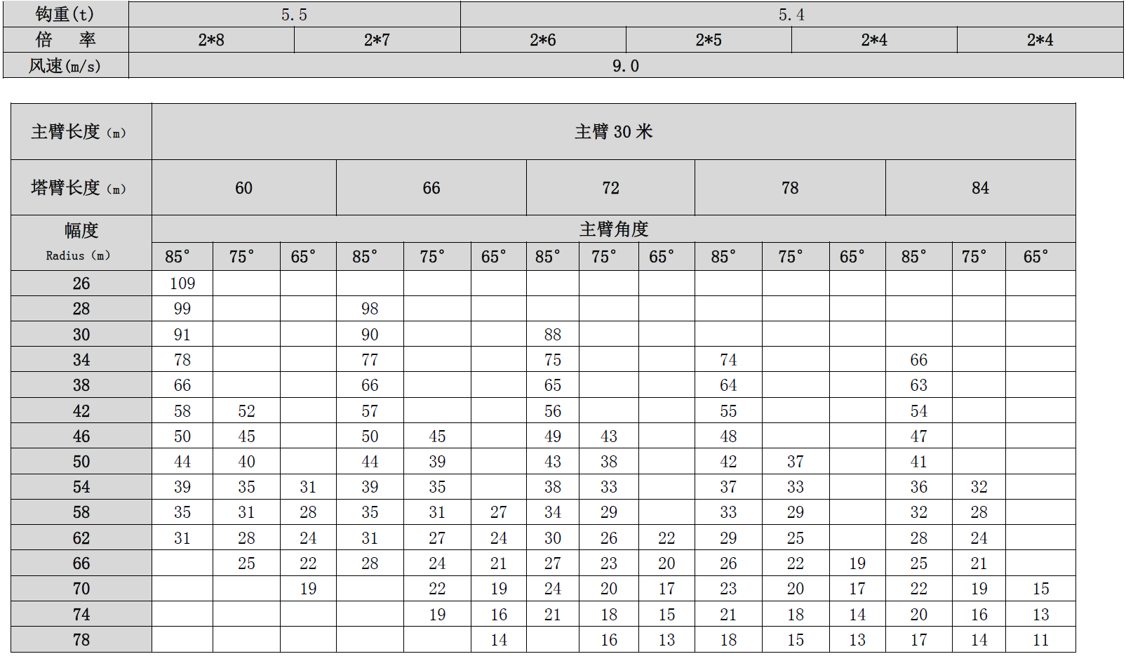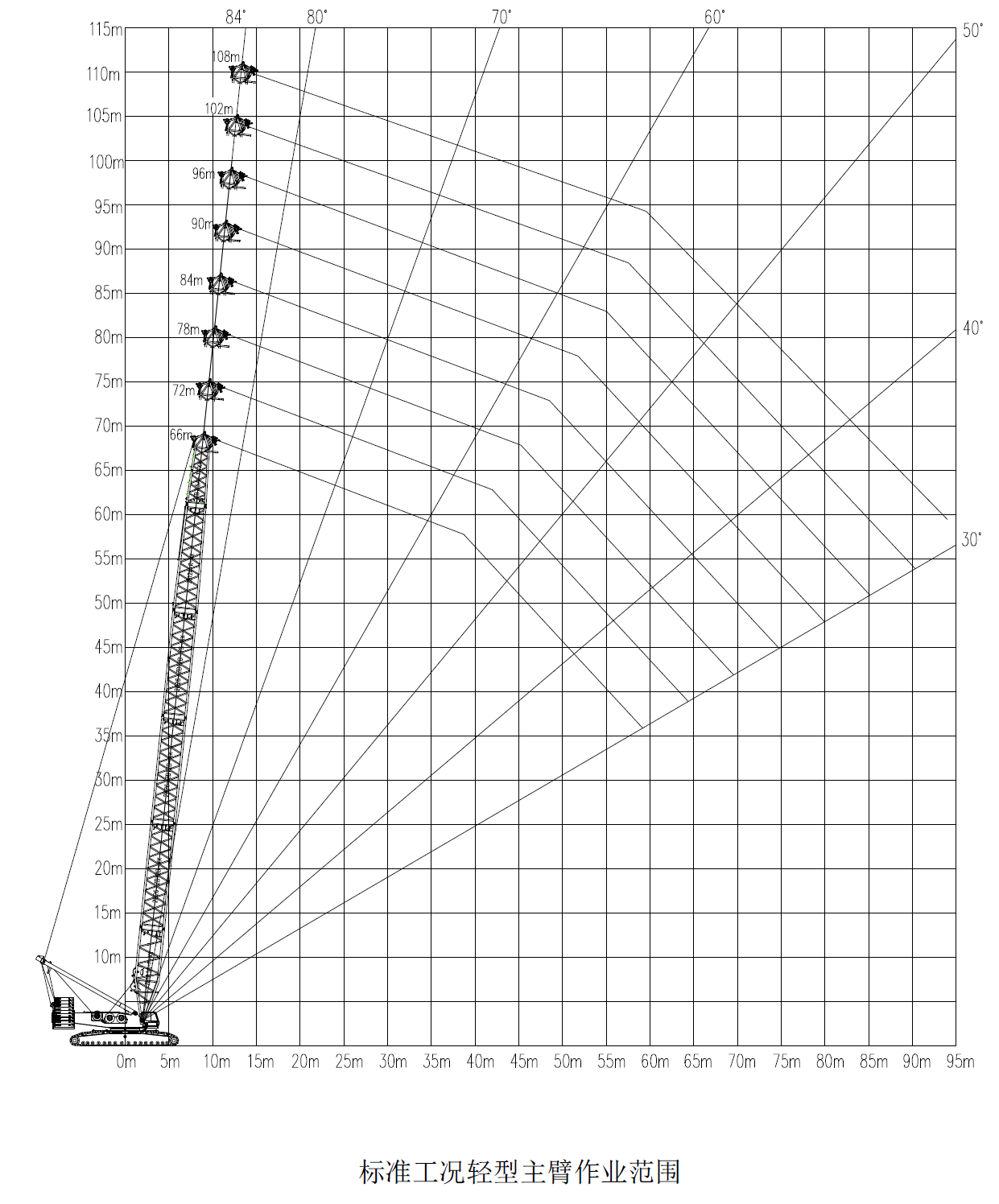 4)WJ:标准 重型主臂 +塔式副臂,主长度为 30 ~66米时可安装塔式副臂 米时可安装塔式副臂 24 ~84 米, 4.5 米塔式副臂底节 米塔式副臂底节 ×1 ,6米塔式副臂中间节 ×2, 12 米塔式副臂 厚壁 中间节 A×1 ,12 米塔式副臂 厚壁 中间节 B×2,12 米塔式副臂 薄臂 中间节 C×2,7.5 米塔式副臂顶节 ×1 。